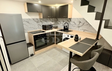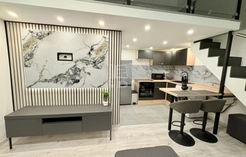 • „A” lakás: 27 m² + 9 m² galéria, elkészült konyhabútorral, gépészetkész állapotban.