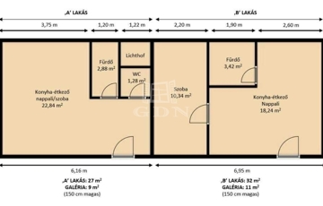 A lakás kialakítása praktikus és átgondolt: konyhabútor, fürdőszoba és a galéria is elkészült, a gépészet teljesen új. Az állapot azonnali használatot tesz lehetővé, további ráfordítás nélkül.