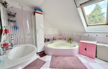 A ház 2005-ben épült, masszív 38-as téglafalazattal, korszerű szigeteléssel. A fűtést kondenzációs kazán biztosítja, padlófűtéssel és klímaberendezésekkel kiegészítve, így a komfort egész évben kiegyensúlyozott. A belső terek világosak, jól tagoltak, a hangulat nyugodt és élhető.