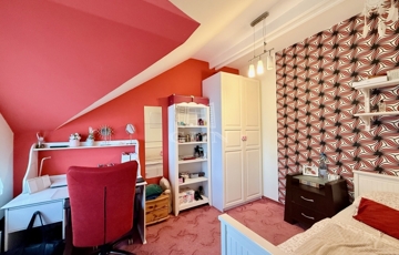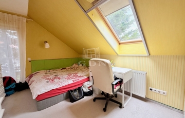 Az emeleti szint egy külön világ: tágas terek, több szoba és egy nagyméretű terasz, ahonnan lenyűgöző panoráma nyílik Szentendrére és a környező dombokra. Ez a lakás akár teljesen önállóan is használható, hosszabb távú bérbeadásra is alkalmas.