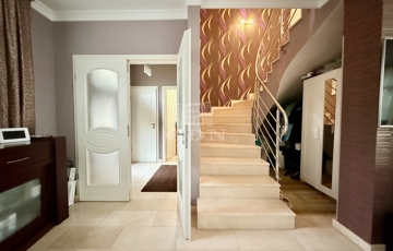 Szentendre egyik legnyugodtabb, domboldali részén, a Bokros utcában található ez a különleges kialakítású, kúria jellegű villa, amely közel 500 m² hasznos alapterülettel és egy 1500 m²-es, panorámás telekkel rendelkezik. Az ingatlan legnagyobb értéke a rugalmassága: minden szint önálló lakóegységként működik, így a ház egyszerre alkalmas nagycsaládos, többgenerációs használatra vagy akár befektetési célú hasznosításra is.