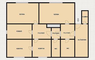 Az ingatlan 4 külön nyíló szobával és 2 külön WC-vel rendelkezik, elrendezése praktikus és jól alakítható. Közepes állapotú, így az új tulajdonos saját igényei szerint alakíthatja tovább. A cirkófűtés gazdaságos fenntartást biztosít.