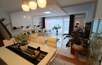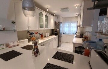 Csendes utcában található világos, kelet – nyugati fekvésű kertkapcsolatos ingatlan. Téglaépítésű, nettó 130m²-es, (hasznos alapterület 102m²) háromszintes, szigetelt sorházi lakás, garázzsal, előkerttel, kamrával. Öt éve teljeskörűen felújított, modern, igényes megjelenésű lakás, napfényes, tágas terekkel.