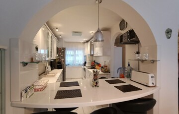 - Beépített, minőségi gépekkel szerelt gépesített konyha. Elektromos tűzhely, sütő, beépített mosogató, mikrohullámú sütő, páraelszívó a konyha részét képezik.