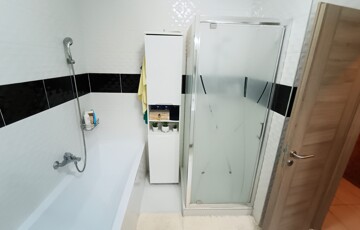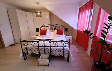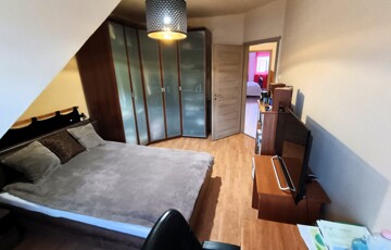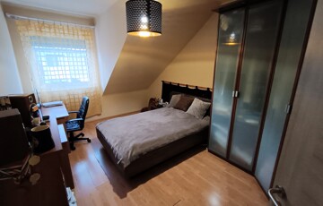 - Emelet helyiségei: közlekedő, 3 külön nyíló szoba, kádas és zuhanykabinos fürdőszoba + WC. A hálószobákban a beépített szekrények a vételár részét képezik.