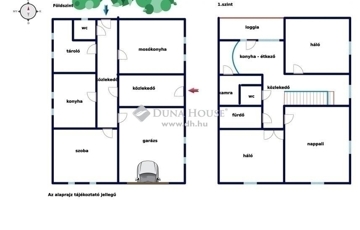Az aszfaltozott utcáról nyíló kapun keresztül juthatunk be a rendezett, parkosított udvarra. A 192 m2-es épület belső kétszintes, praktikusan elrendezett lakótérből áll.