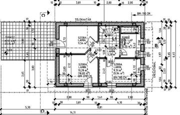 A földszinten egy tágas amerikai konyhás nappali, szoba, mosókonyha- wc, előtér kerül kialakításra, az emeleten pedig 3 szoba, fürdőszoba, közlekedő és terasz.