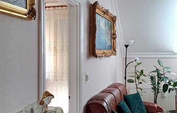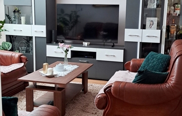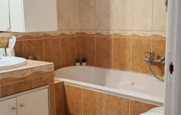 Alsó szint: nappali, 2 hálószoba, konyha + étkező, kamra, fürdőszoba (káddal és zuhanykabinnal), külön WC