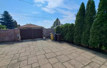Eladó a Praktiker közelében egy 2009-ben épült, mediterrán stílusú, 3 szoba + nappalis, téglából készült, szigetelt családi ház. Az ingatlan egy 741 nm-es, gondosan parkosított telken fekszik, ahol kétállásos garázs, fedett terasz, saját wellness részleg és fűtött télikert is található.