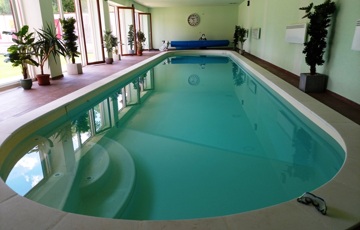 Fűtött medence: 16x3,4 m, teljes gépészettel és légtechnikával, jakuzzival