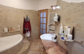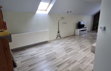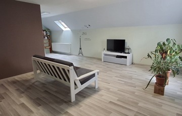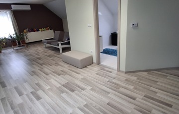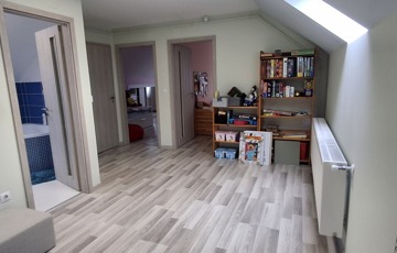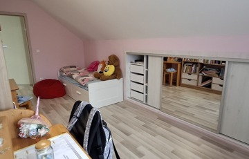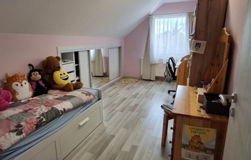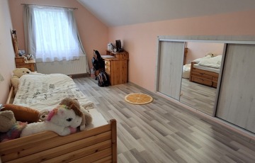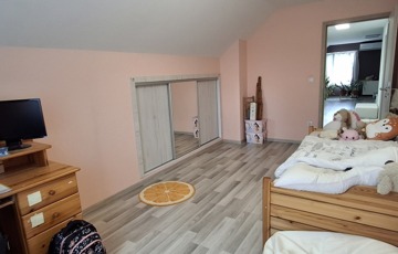A felső szinten: nappali, 2 hatalmas hálószoba, fürdő, wc.