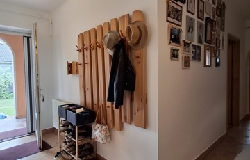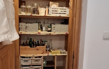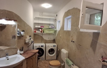 Az alsó szinten: amerikai konyha + nappali, 3 hálószoba, spájz, konyha, fürdő, wc. A nappaliban egy szuper cserépkályha, mely igazán megadja a ház egész hangulatát.