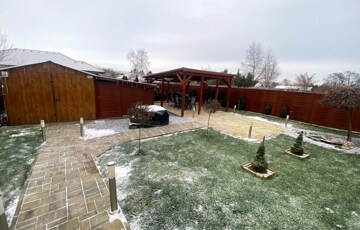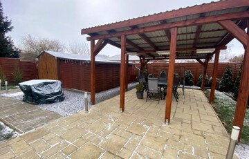 A lakótérhez egy 27 m²-es terasz kapcsolódik, valamint a kertben helyet kapott egy 24 m²-es fedett filagória, amely kiváló helyszíne lehet családi és baráti összejöveteleknek.A pihenést és feltöltődést saját szauna teszi teljessé.