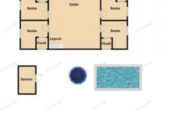 - medence (egy 3x6m 1,3m mély és egy 3x3m 0,6m mély részből áll)