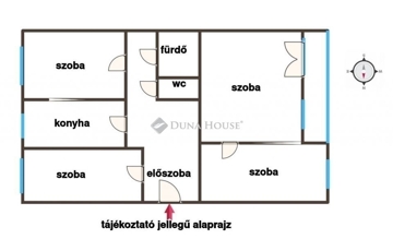 Tájolás: K és NY, Két szoba és a konyha ablakai keletre, míg a másik két szoba és az erkély ablakai nyugatra néznek.