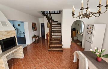 Alsó szint: tágas nappali, étkező, konyha, kamra, fürdőszoba, külön WC