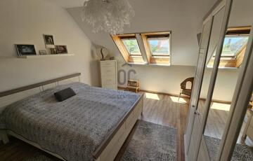 Műanyag nyílászárók, a tetőtérben újszerű Velux tetőablakok biztosítják a természetes fényt.