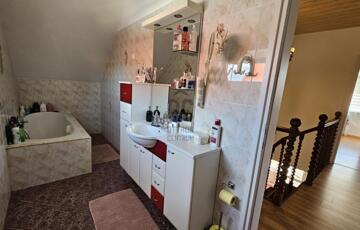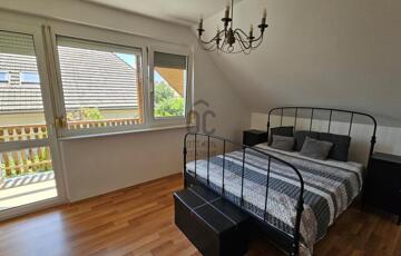 Emelet: 3 hálószoba, fürdőszoba WC-vel, mosókonyha, erkély, amely két hálószobából is megközelíthető.