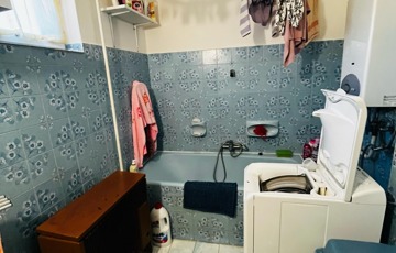 - a második lakásban pedig a földszinten egy szoba, konyha-étkező, kamra, wc, fürdőszoba ( fürdőkáddal ), közlekedő , a tetőtérben két szobával bővítették a teret