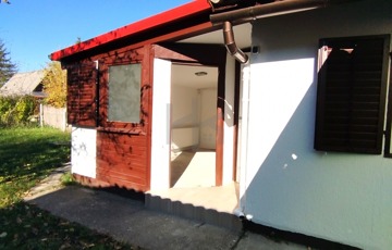 -az ingatlanhoz tartozik 10m2-es terasz, valamint egy fedett kocsibeálló és egy külön élló helyiség is