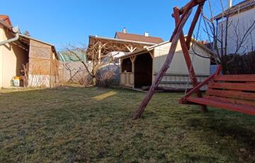 A házból kilépve jutunk ki a hátsó udvarra, ahol egy épített, fedett fából épült kerti pihenőhely kapott helyet a sütögetéshez, bográcsozáshoz. Családi, baráti összejövetelek tökéletes helyszíne a zöld parkosított 450 m2 nagyságú udvar, évelős cserjékkel, néhány gyümölcs fával.