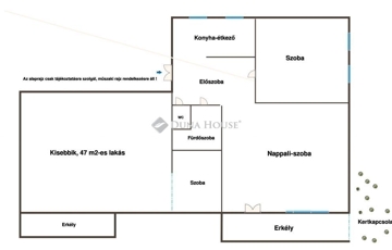 A lakások külön helyrajzi számon szerepelnek, de jelenleg egyben, praktikus és hangulatos elrendezéssel funkcionálnak.
