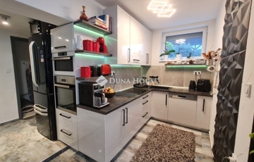 PANORÁMÁS, MODERN CSALÁDI HÁZ ELADÓ ZALAEGERSZEGEN A GÓGÁNHEGYEN PRÉMIUM KIVITELBENZalaegerszeg csendes, panorámás részén kínálunk megvételre egy 2022-ben épült, 104 m²-es kétszintes családi házat.A keletnyugati tájolású ingatlan aszfaltozott úton könnyen megközelíthető. A 1405 m²-es telek felső részén gondosan karbantartott, parkosított kert található fenyőkkel, díszbokrokkal és számos értékes dísznövénnyel, amely nyugodt, intim környezetet biztosít.A telek alsó része jelenleg szabad terület, gyümölcsfák ültetéséhez ideális terep. A ház utcafronti része kerítéssel ellátott, míg az alsó terület még nincs bekerítve.A ház kialakítása:- két külön bejáratú lakrész, amely minimális ráfordítással akár egymástól függetlenül is tud funkcionálni.- jelenleg a ház egy nappali + három szoba elrendezéssel van napi használatban, de két nappali + két szoba elrendezéssel is használható.Főbb jellemzők: 3×25 A ipari áram, H-tarifás rendszer Az épület korszerű hőszigeteléssel ellátott, amely hozzájárul az energiahatékony, gazdaságos fenntartáshoz. Elektromos fali panel minden heyliségben + 3 db hűtő-fűtő klíma Kandalló a meghitt hangulatért Minden szobában TV-kiállás Gépesített konyha LED-világítás az egész ingatlanban Kamerarendszer Műanyag nyílászárók redőnnyel, szúnyoghálóval Külső árnyékoló a teraszonKényelmi extrák: 40 m²-es panorámás, részben fedett terasz 7 m²-es erkély a felső szinten Igényesen kialakított belső lépcsőház a két szint között Két fürdőszoba:o egyikben kád és zuhany +WCo másikban zuhanyzó WC-vel Külső tároló Épített bográcsozóParkolás: Elektromos kapuval ellátott fedett beálló 1 autó számára A ház előtt további 3 autó parkolására kialakított helyEz az ingatlan nemcsak egy ház, hanem élettér, ahol a modern műszaki tartalom, a természet közelsége és a panoráma valódi otthonélményt nyújt. Ne hagyja ki ezt a kivételes lehetőséget tekintse meg személyesen!