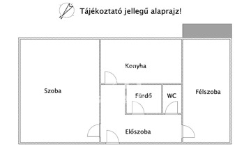 - 1 egész szobából, 1 félszobából, 1 előszobából, 1 konyha/étkezőből, fürdőszobából (zuhanyzós), és 1 különálló WC-ből áll.