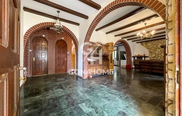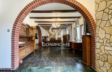 * Főépület: kétszintes, bruttó 320 m², 5 szoba + 2 nappali + étkező-konyha, 2 fürdőszoba, 2 külön WC, gardrób, erkély, részben alápincézett