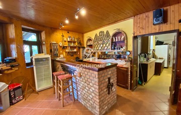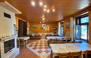 - A legalsó szinten található közösségi helyiség/étkező (étterem) - bárpulttal, 1 nagy ipari konyhával, férfi/női WC-vel, privát helyiséggel