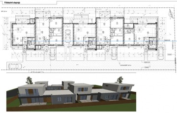 - Víz: Az utcai gerincvezetékről a telek ellátott, épületbe beállás készül