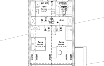 Fent 2 SZOBA kapott kialakítást, mind a kettő erkély kapcsolattal. A közlekedő két végén, két beépített szekrény lenne elhelyezve.