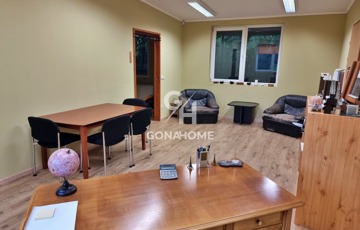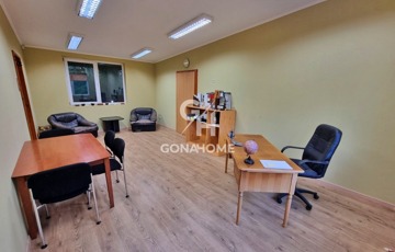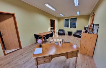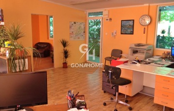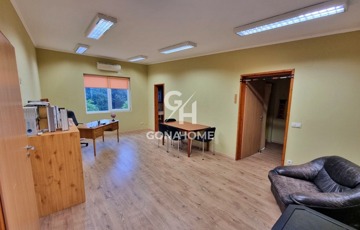 - Az iroda ÚJ ÉPÍTÉSŰ szendvicspanel és 150 m2. Itt találhatók irodák, tárgyaló, fürdő-WC, teakonyha. A bejáraton hangulatos erdei környezetű fedett terasz került kialakításra
