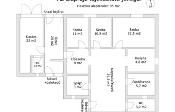 - Az egy szintes ingatlanba található: előszoba, 3 szoba, nappali/étkező, konyha, spájz, fürdőszoba, WC