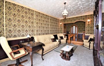 A lakásban egyedi olasz nemes bútorok megegyezés tárgyát képezik, akár a szekrénysor, az újszerű állapotú bőr ülőgarnitúra, a valódi mahagóni fából készült íróasztal az ülőgarnitúrához egyedileg gyártatott bőrfotellel.