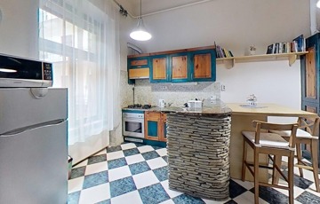 A konyha teljesen felszerelt, a munkapult márvánnyal borított, amely egy szintén márványborítású bárpulttal is ki van egészítve.