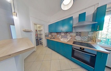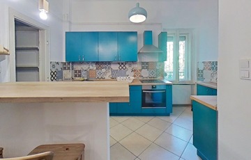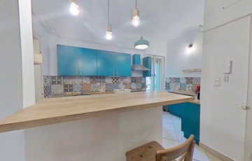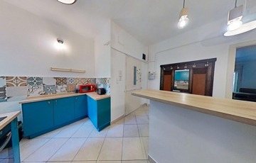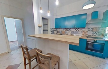 A konyha és a nappali közötti fal ki lett bontva, így a belső tér tágasabb, és világosabb lett.