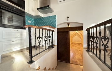 A részletekben rejlő minőségi eleganciát hosszan lehetne taglalni: kézzel készített kerámia burkolatok, tömörfából készült konyhabútor AEG gépekkel, kovácsoltvas korlátok és elektromos kapu, mészkő és márvány felületek, tihanyi bazalt tufából készült homlokzati kőburkolatok, vagy éppen a pince korlát, ami fekete dió gyökérből készült. Minden képzeletet felülmúló adottságait röviden összefoglalni lehetetlen, tényleg ajánlott a virtuális túra megnézése.