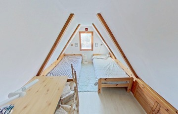 Az emeleten két (egy nagyobb és egy kisebb) háló áll rendelkezésre.