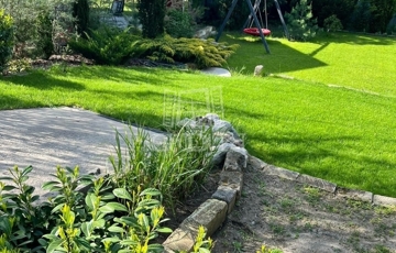 Az udvarban gyűrűs kút van, öntözőrendszer előkészítve.