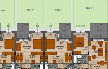 - Nettó lakótér: 35 m²: Amerikai konyhás nappali kis hálósarokkal, fürdőszoba zuhanyzóval, külön WC, előszoba.