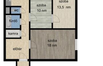 - 3 szoba, konyha, fürdő, WC, erkély, kamra, előtér.