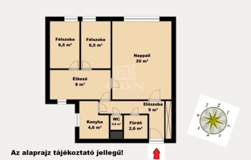 - Szoba: 20 m²; két félszoba: 2 x 6,5 m².