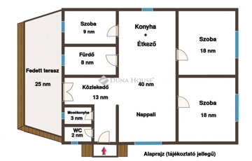 - három szoba (18,18, és 9 nm)