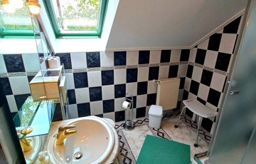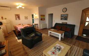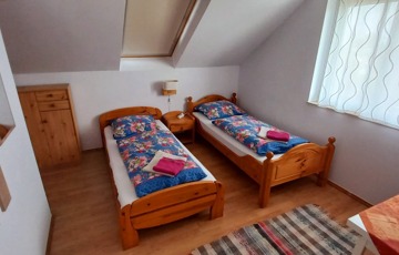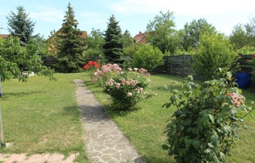 A nyáron kellemesen hűvös szuterén szinten jelenleg a lakórész található, a 1. külön bejárattal is ellátott szinten 3 szobás, teljesen felszerelt apartman a 2. szinten 4 szobás panzió. A kert méretéből adódóan könnyen kezelhető, sok erőfeszítést nem igényel, illatos rózsák, virágos bokrok, szalonnasütő teszi barátságossá mindenki számára.