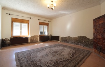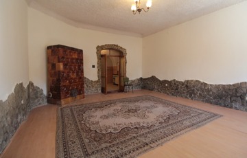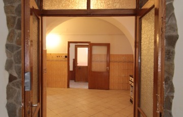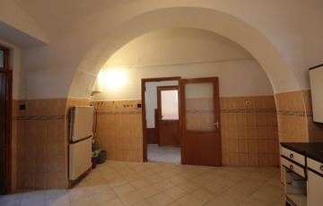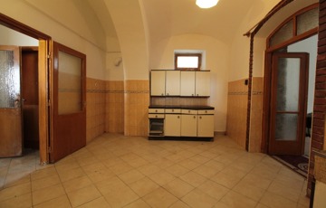• Közlekedő: jobbra egy boltíves konyha, fürdő+WC és egy nagyméretű szoba található