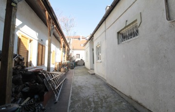 • Közlekedő: balra két egymásból nyíló szoba, kijárattal a hátsó kertbe