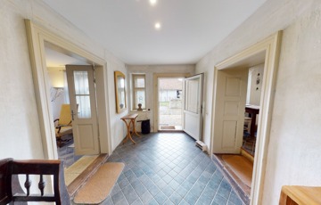 Nyílászárók régi fa melyek fel lettek újítva, fontos azonban megemlítenem, hogy új műanyag hőszigetelt nyílászárók is be lettek építve a régiek mellé. Belső tér nyílászárói maradtak a régiek, stílusában jól illik a házhoz. Villany vezetékek teljesen ujjak. Burkolatait tekintve kerámia burkolatok lettek lerakva.