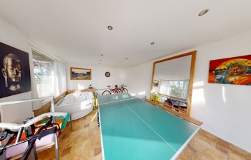 A fő épületben 3 szoba konyha, nappali és előtér lettek kialakítva, a ház érdekessége, hogy mindegyik helység mögött található egy leválasztott rész melyből gardrób, tároló és fürdőszoba lettek kialakítva. Továbbá egy külön leválasztott rész, melynek bejárata az udvarról történik, jelenleg játék és pihenő szoba, konditerem, egy masszáskád is itt került beépítésre a teljes kikapcsolódás érdekében.