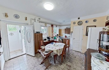 A lakás igazán élhető hiszen egy nagy, egy légterű nappali/étkező/konyha mellett az abból nyíló 3 külön bejáratú szoba áll még rendelkezésre. Ezekből a két nagyobb az utcafrontra néz, a kisebb pedig a kert felőli oldalon van. A két nagyobb szoba egyikének közvetlen (bár jelenleg nem használt) kijárata van az utcára.